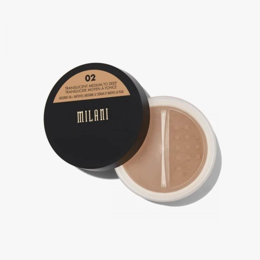 استمتعي ببشرة خالية من العيوب وإطلالة مشرقة تدوم طويلاً مع بودرة ميلاني السائبة للبشرة المتوسطة إلى الداكنة 02!