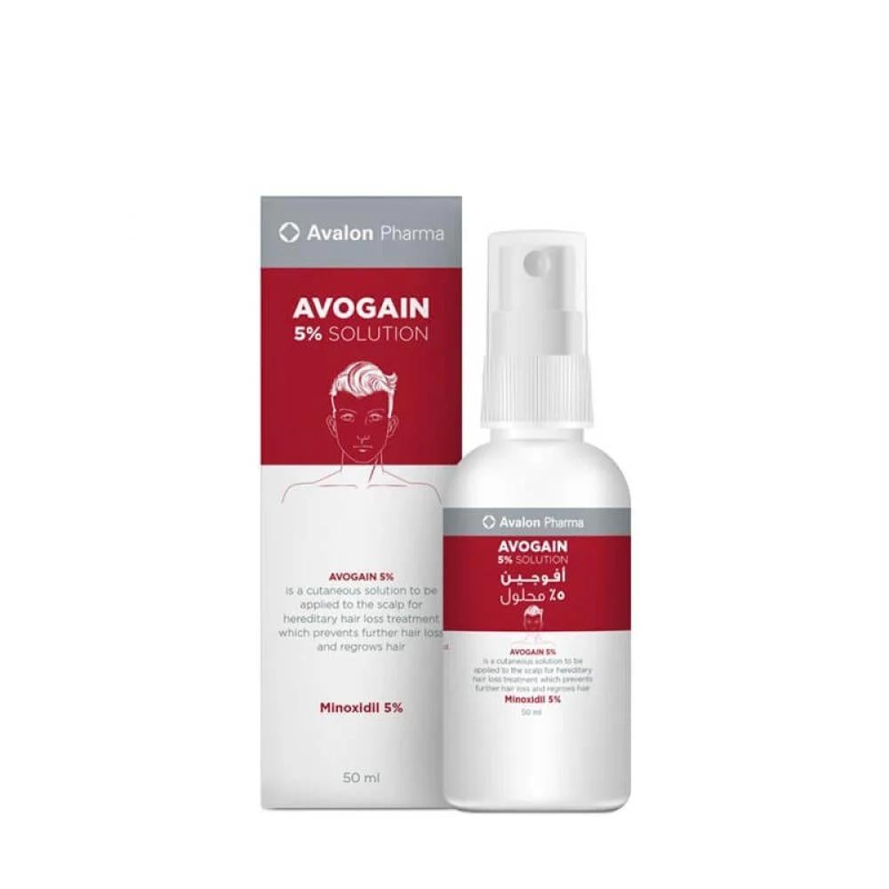 محلول فعال لتعزيز نمو الشعر ومنع تساقطه. يحتوي المنتج على ٥٪؜ من المادة الفعالة المعروفة باسم مينوكسيديل. يعتبر مينوكسيديل مادة معتمدة سريرياً لعلاج تساقط الشعر والصلع الوراثي لدى الرجال والنساء. يتم تطبيق أفوجين ٥٪؜ مباشرة على فروة الرأس المتأثرة. يعمل المنتج عن طريق توسيع الأوعية الدموية في فروة الرأس وتحسين تدفق الدم وتغذية بصيلات الشعر. هذا يساعد في تحفيز نمو الشعر وتعزيز كثافته وسمكه.