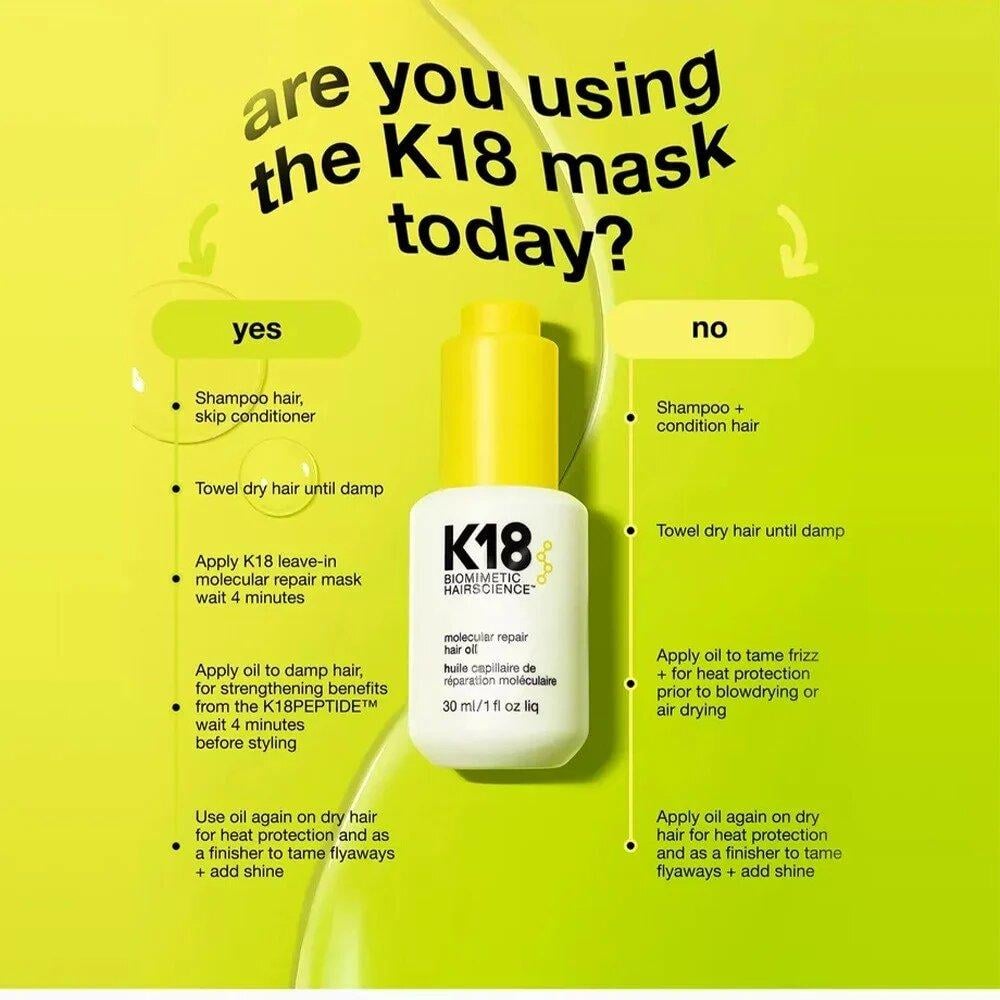 • Apply to damp hair from mid-length to ends. To maximize the benefits of K18 Peptide, wait 4 minutes before styling.